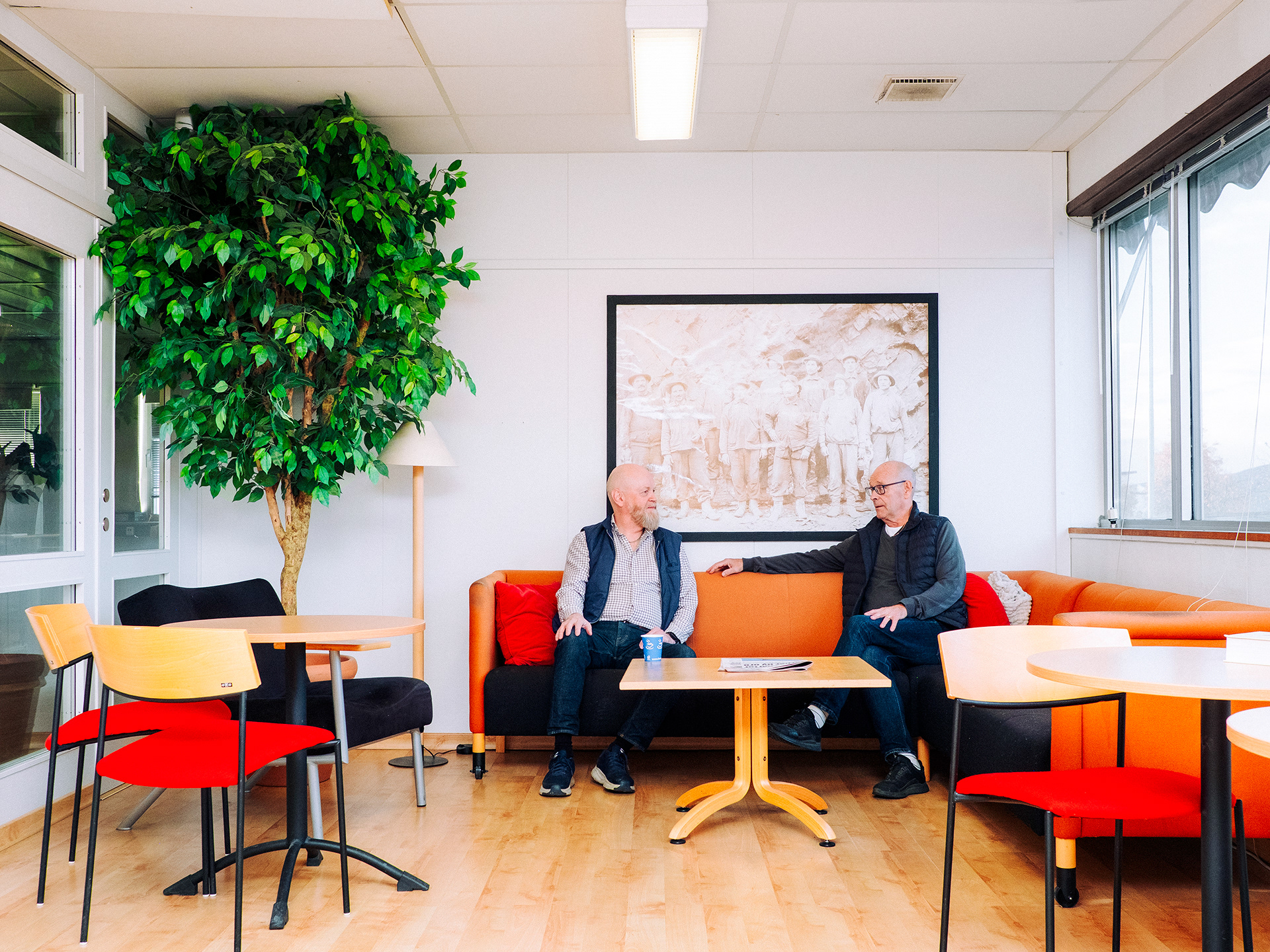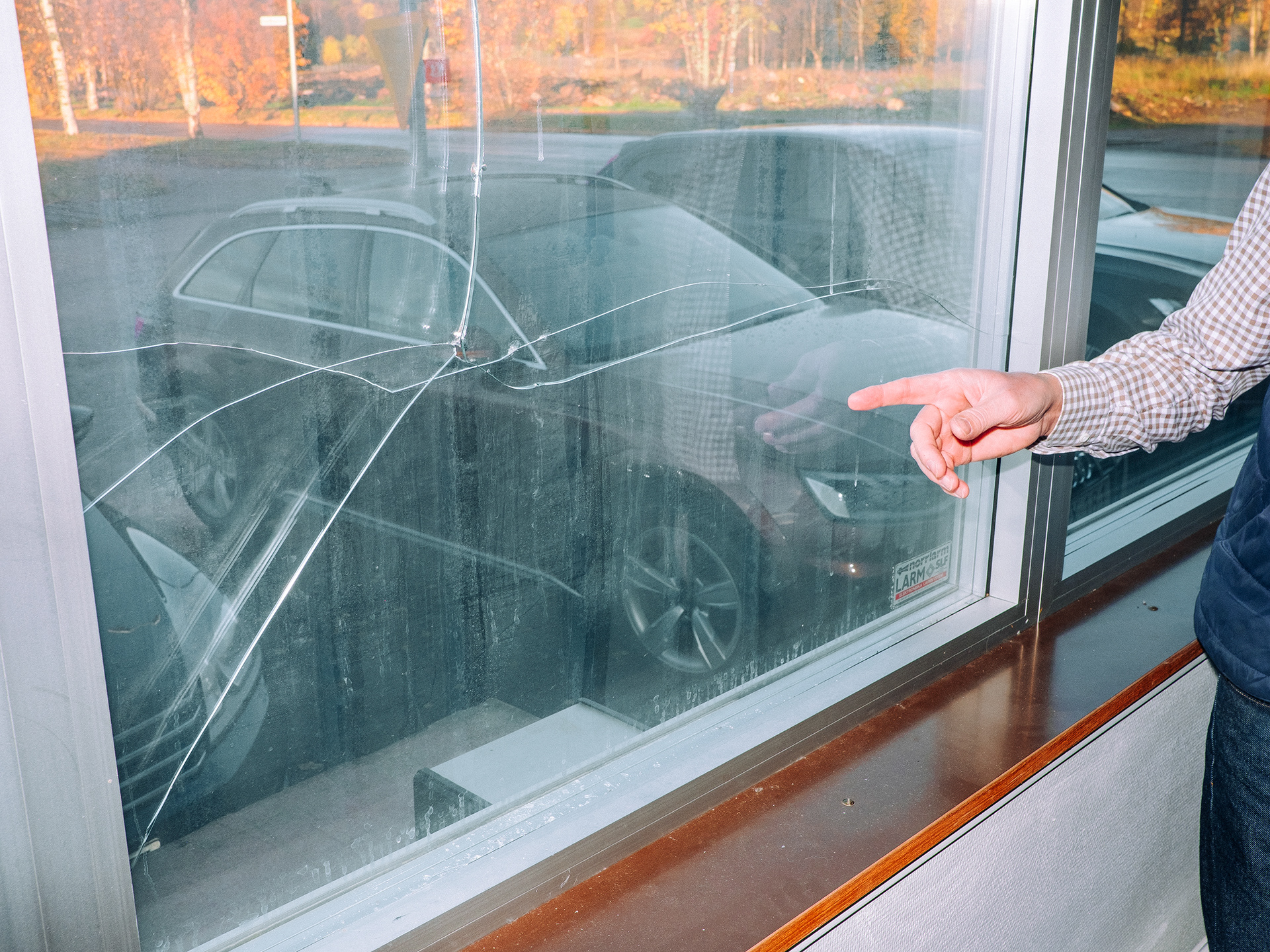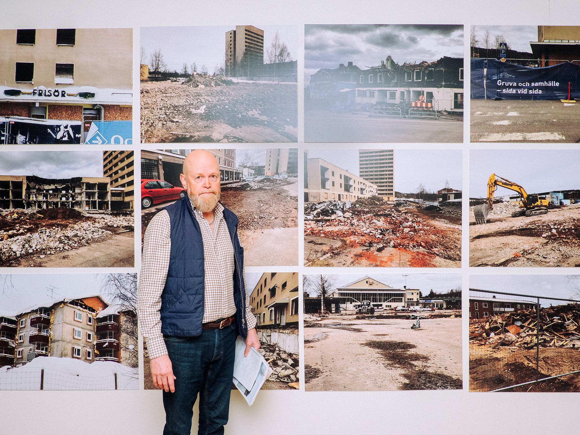 Samtidigt som resten av Malmberget håller på att rivas så står tryckeriet Grafex kvar. Gruvföretaget LKAB har köpt ut de flesta företag och privatpersoner från staden men de har ännu inte kommit överens med Grafex om ersättning. Glasrutorna på tryckeriet har spruckit för att det skakar så mycket från gruvan. Åke Hannus hund Harry vågar inte längre gå in i byggnaden på grund av skalven. "Han lägger sig bara på vägen utanför. Jag kan ju bära in honom, men jag ser att han inte mår bra" säger layoutaren Åke. För Dagens Arbete.