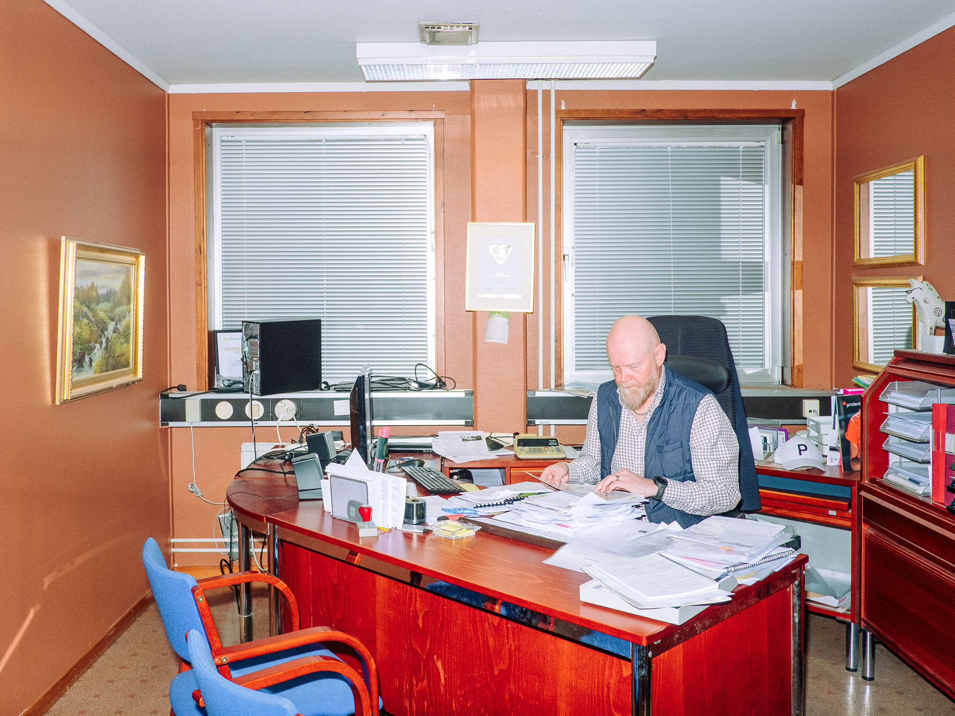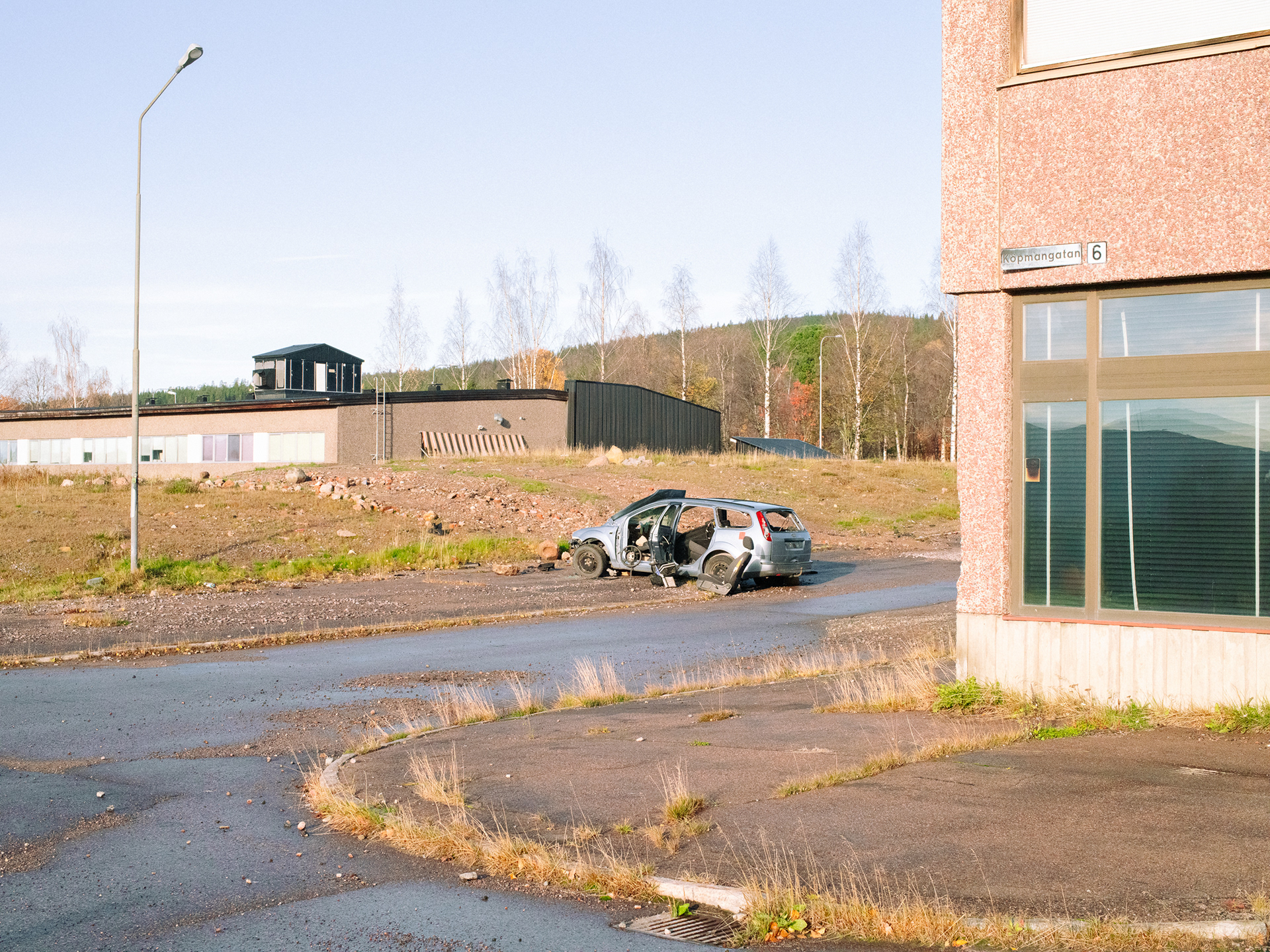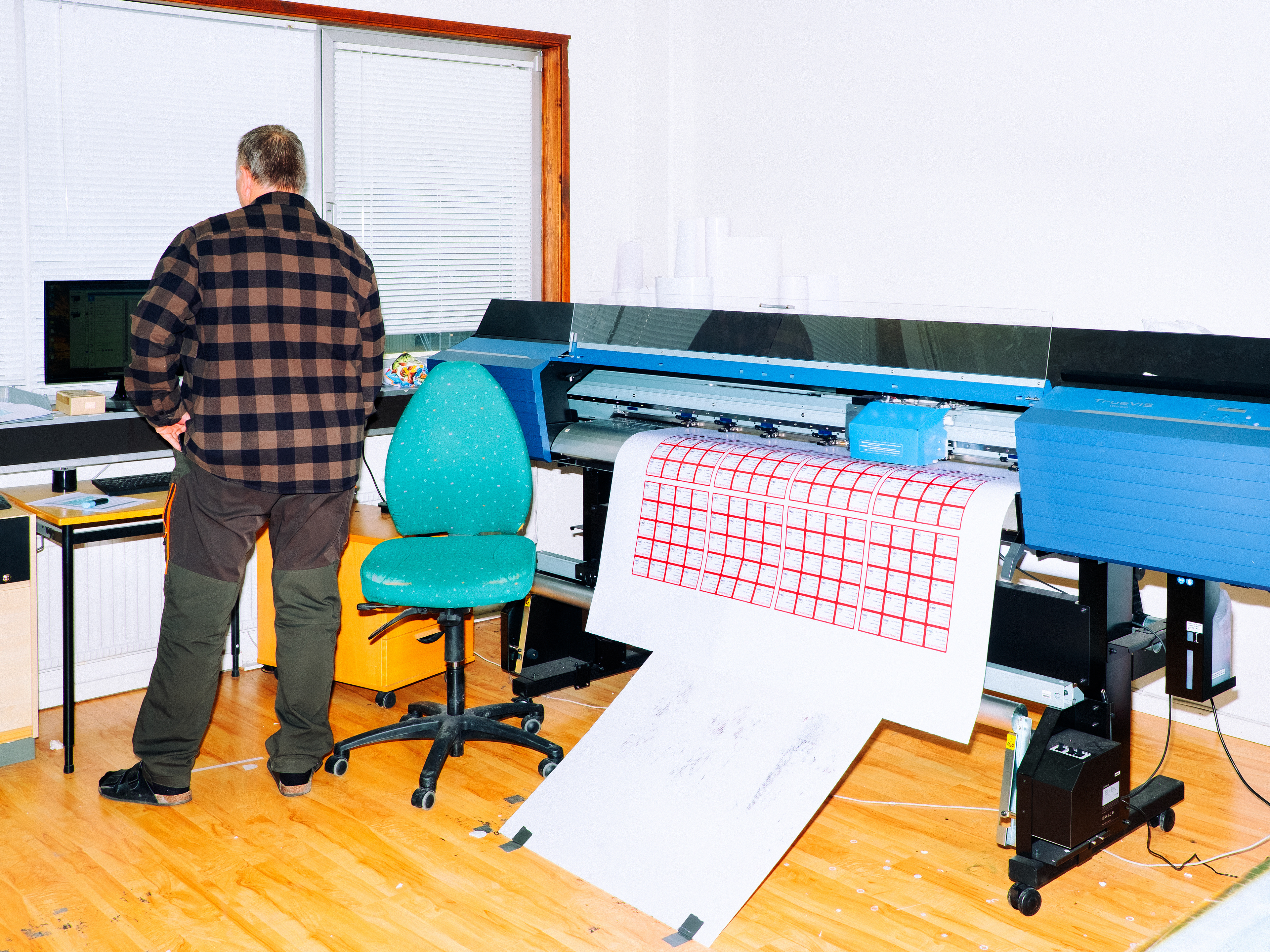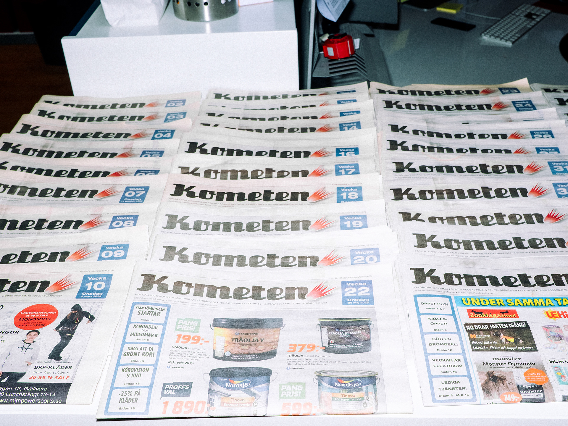 Samtidigt som resten av Malmberget håller på att rivas så står tryckeriet Grafex kvar. Gruvföretaget LKAB har köpt ut de flesta företag och privatpersoner från staden men de har ännu inte kommit överens med Grafex om ersättning. Glasrutorna på tryckeriet har spruckit för att det skakar så mycket från gruvan. Åke Hannus hund Harry vågar inte längre gå in i byggnaden på grund av skalven. "Han lägger sig bara på vägen utanför. Jag kan ju bära in honom, men jag ser att han inte mår bra" säger layoutaren Åke. För Dagens Arbete.